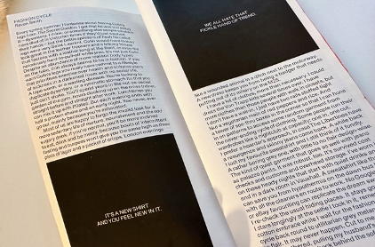 The magazine's architecture was inspired by the discovery that readers often end up folding magazines and newspapers in half, so the design team applied this reaction process to the structure, opting for quadruple-page layouts rather than the traditional double-page spreads, folded vertically to create a narrow page shape, defined as a “wide magazine disguised as a tall and thin one” (Morley,2016). It is printed on low gloss uncoated paper, which adds an aesthetic appeal and makes it easier on the eyes to improve readability. This unique selection of material and structure serves as a testament to the magazine's meticulous attention to detail, conveying a sense of practical sophistication.